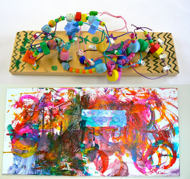 I like the idea of the collage on wood with the wire and beads. Your little artists look so happy and their creations are so fun they make me smile. My classes have created wire sculptures; enjoyed the process and accomplished cool results. I’m currently developing a blogspot for my art program and I’ll let you know when I have it up.